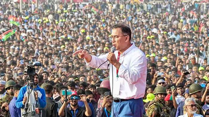 বিএনপির চেয়ারম্যান বলেন, ‘আমরা দেখেছি গত ১৬ বছরে ঢাকাসহ দেশের বড় বড় শহরে মেগা প্রজেক্টের নামে মেগা দুর্নীতি হয়েছে। আমরা যেমন খুন দেখেছি, গুম দেখেছি, মিথ্যা মামলা দেখেছি, গায়েবি মামলা দেখেছি; একইভাবে মেগা মেগা দুর্নীতিও দেখেছি। এই অবস্থার পরিবর্তনের সময় চলে এসেছে। এই অবস্থার পরিবর্তন করতে হবে। আর এই অবস্থার পরিবর্তন যদি করতে হয় তাহলে গত ৫ আগস্ট মানুষ দলমত নির্বিশেষে যেভাবে রাজপথে নেমে এসেছিল, ঠিক একইভাবে আগামী ১২ তারিখের নির্বাচনে আপনারা যারা ভোটার আপনাদের সকলকে ভোটকেন্দ্রে নেমে আসতে হবে। তা নাহলে গণতন্ত্র আবার বাধাগ্রস্ত হবে।’