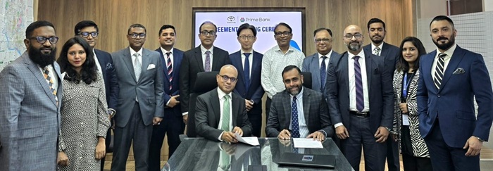 চুক্তিতে স্বাক্ষর করেন প্রাইম ব্যাংক পিএলসির এসইভিপি ও হেড অব ডিস্ট্রিবিউশন নেটওয়ার্ক মামুর আহমেদ এবং টয়োটা বাংলাদেশ লিমিটেড-এর প্রেসিডেন্ট ও ম্যানেজিং ডিরেক্টর প্রেম্মিত সিং।