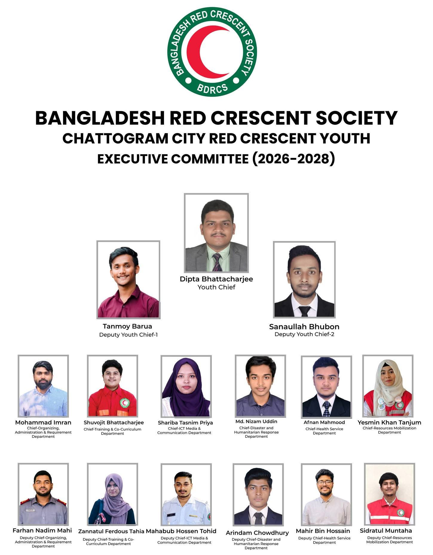 আর্তমানবতার সেবায় কার্যক্রম পরিচালনাকারী চট্টগ্রাম সিটি যুব রেড ক্রিসেন্টের ২য় কার্যকরী পর্ষদ গঠন করা হয়েছে। চট্টগ্রাম সিটি কর্পোরেশনের মেয়র এবং চট্টগ্রাম সিটি রেড ক্রিসেন্টের চেয়ারম্যান ডা. শাহাদাত হোসেন, চট্টগ্রাম সিটি রেড ক্রিসেন্টের সেক্রেটারি গোলাম বাকি মাসুদ এবং ইউনিট লেভেল অফিসার মো. আব্দুর রহিম আকন-র স্বাক্ষরিত একটি পত্রে ৩০ মার্চ,২০২৬ থেকে আগামী ২৯ মার্চ,২০২৮ পর্যন্ত ১৫ সদস্যের কার্যকরী কমিটি প্রকাশ করা হয়।