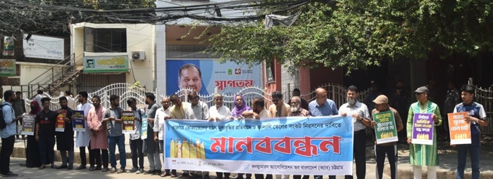 জ্বালানি ও ভোজ্যতেলসহ নিত্য প্রয়োজনীয় পণ্য নিয়ে অসাধু ব্যবসায়ীদের কারসাজি এবং জ্বালানি তেলের কৃত্রিম সংকট তৈরি করে পুরো দেশে নৈরাজ্য সৃষ্টি করা, দাম বৃদ্ধির লক্ষ্যে বাজার থেকে ভোজ্যতেল উধাও এর প্রতিবাদে শনিবার (১১ এপ্রিল) চট্টগ্রাম প্রেসক্লাব চত্ত্বরে কনজুমারস এসোসিয়েশন অব বাংলাদেশ (ক্যাব) চট্টগ্রাম বিভাগ ও মহানগর কমিটির উদ্যোগে প্রতিবাদি মানববন্ধন অনুষ্ঠিত হয়।